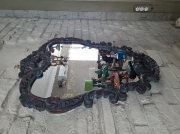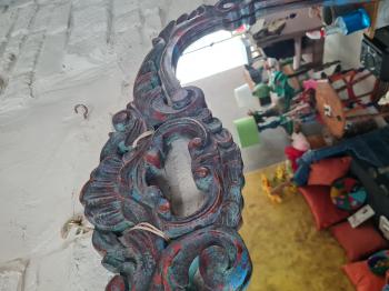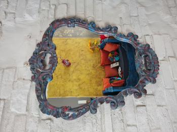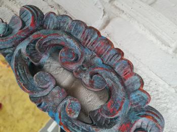 Eskitme boyalı, vintage masif ahşap çerçeveli aynadır.