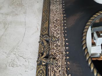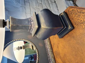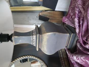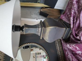 Eskitme boyalı ve çiçek dekorlu, antrasit renkli ayna ve abajur seti.