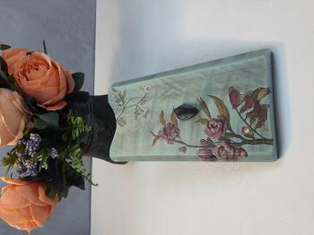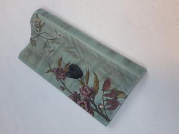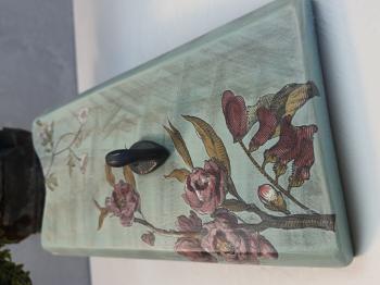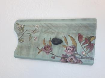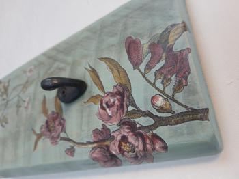 Eskitme boyalı ve çiçek dekorlu vintage ahşap askı.