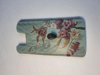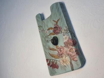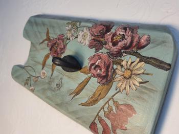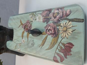 Eskitme boyalı ve çiçek dekorlu vintage ahşap askı.