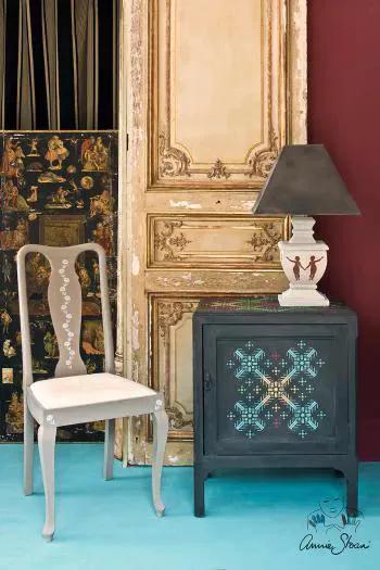 AnnieSloan kendi özel ince stencil koleksiyonunu Chalk Paint® ile mobilya boyarken bir dekoratif tamamlayıcı malzeme olarak oluşturmuştur.