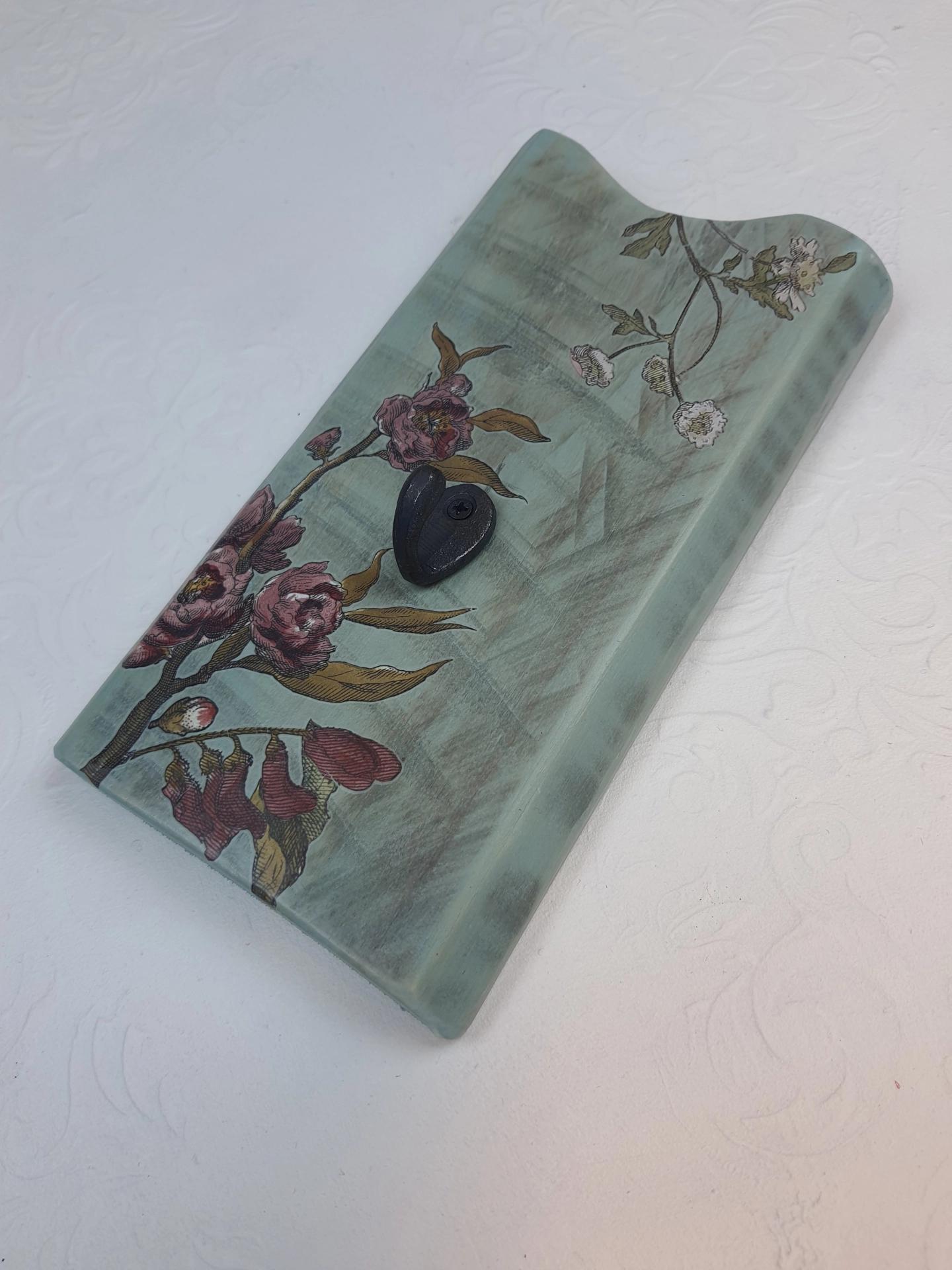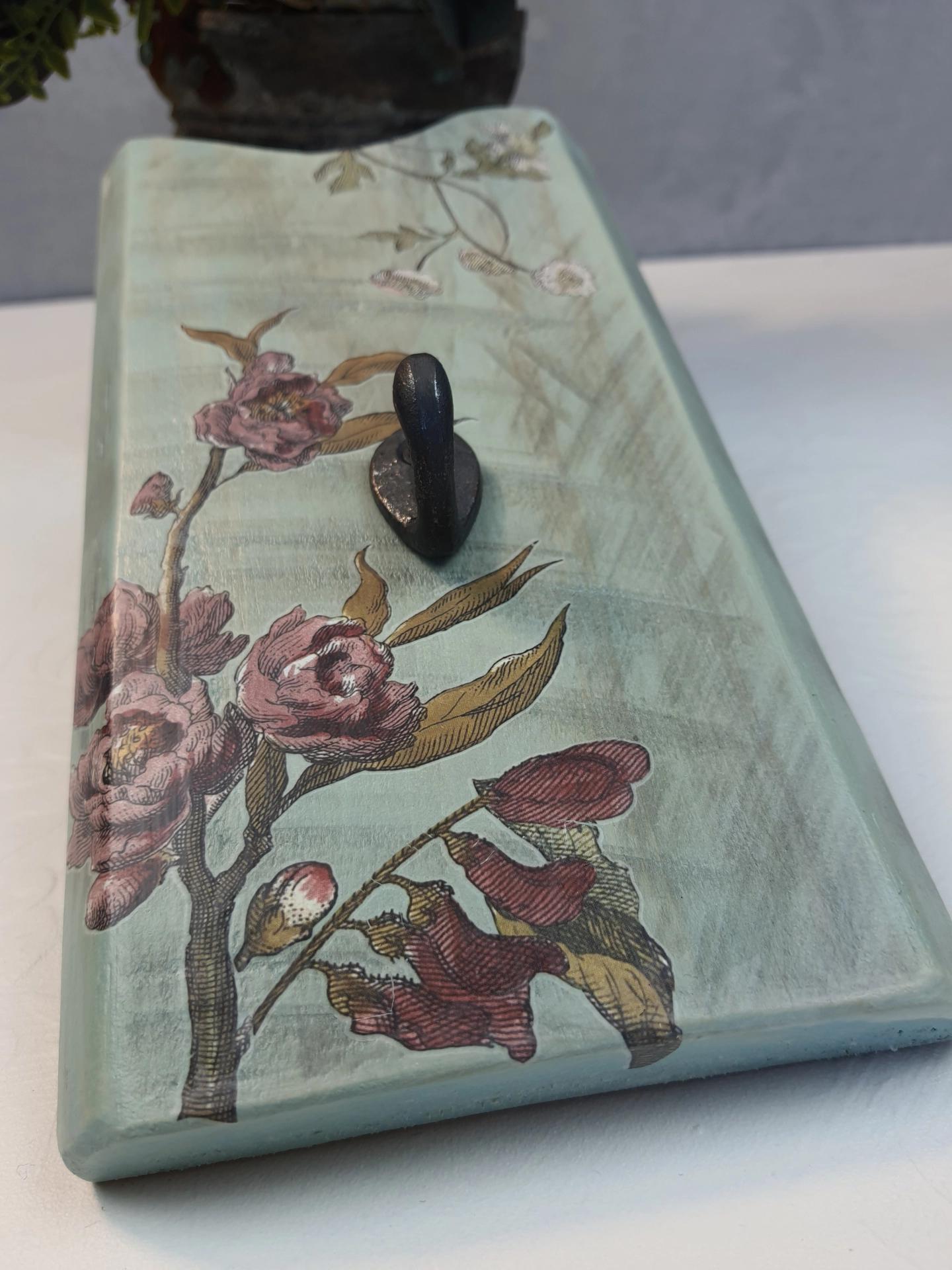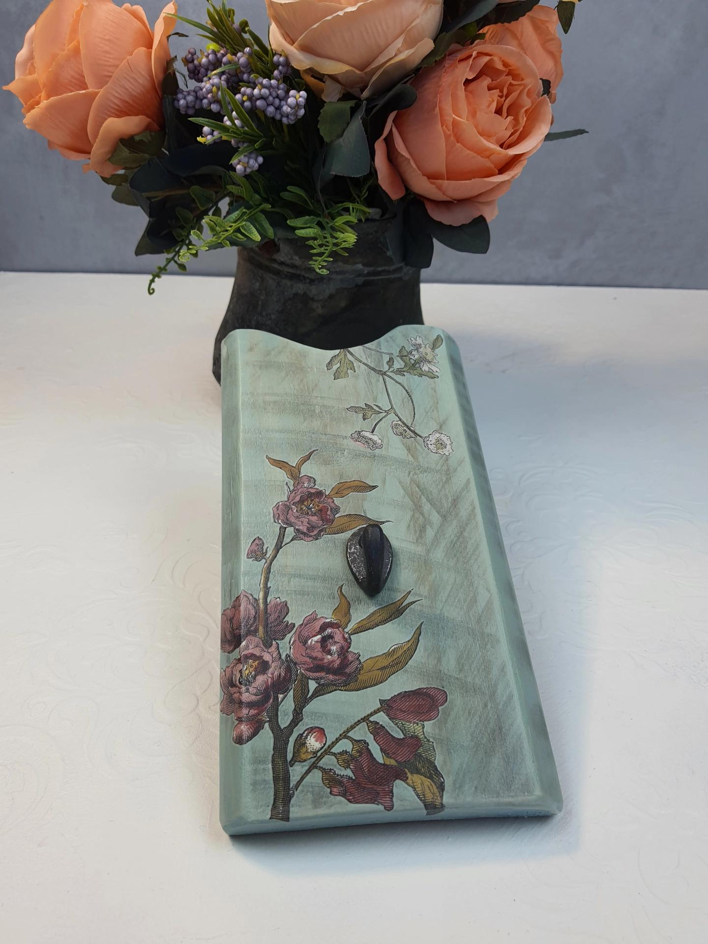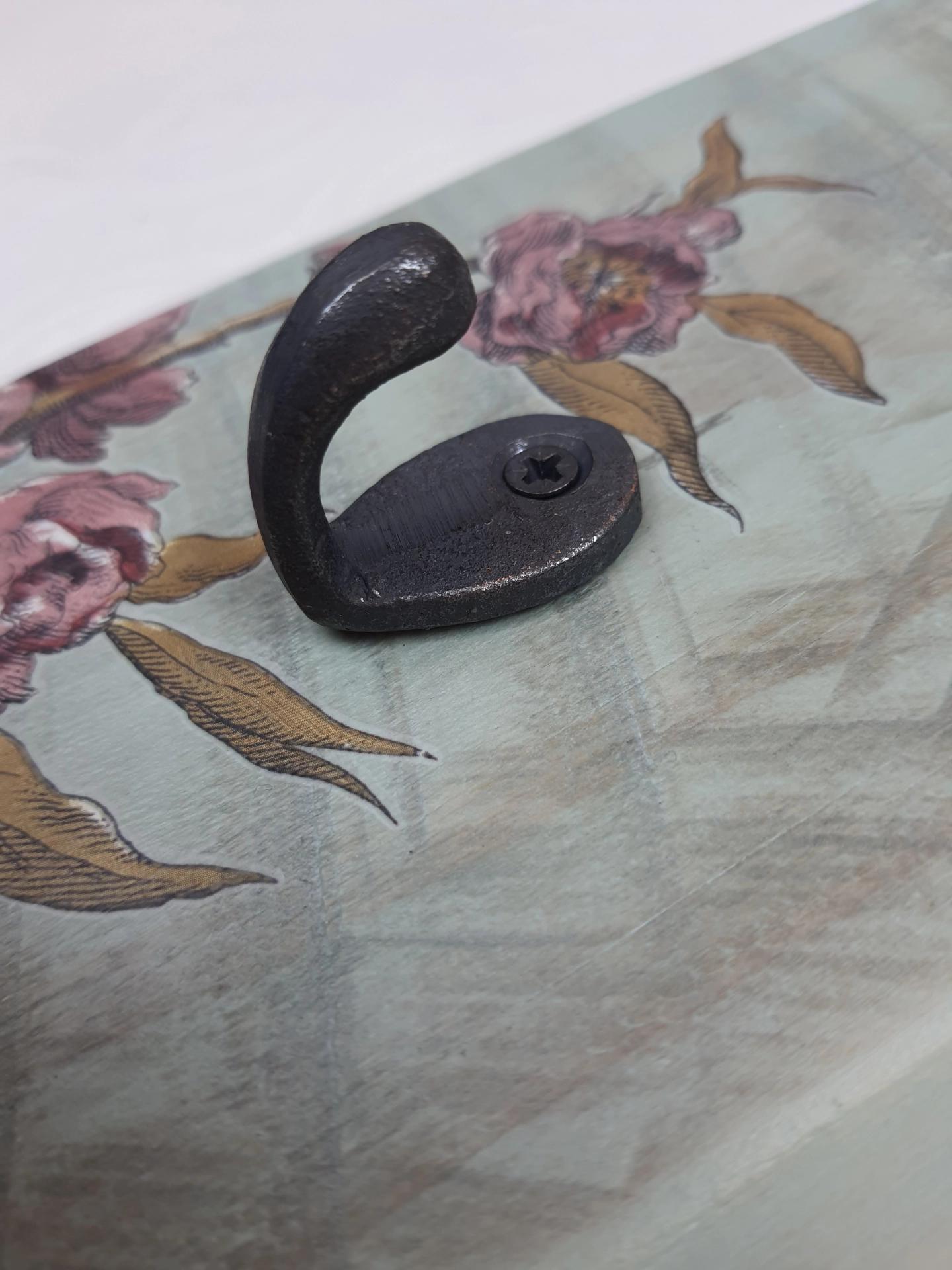 Eskitme boyalı ve çiçek dekorlu vintage ahşap askı.